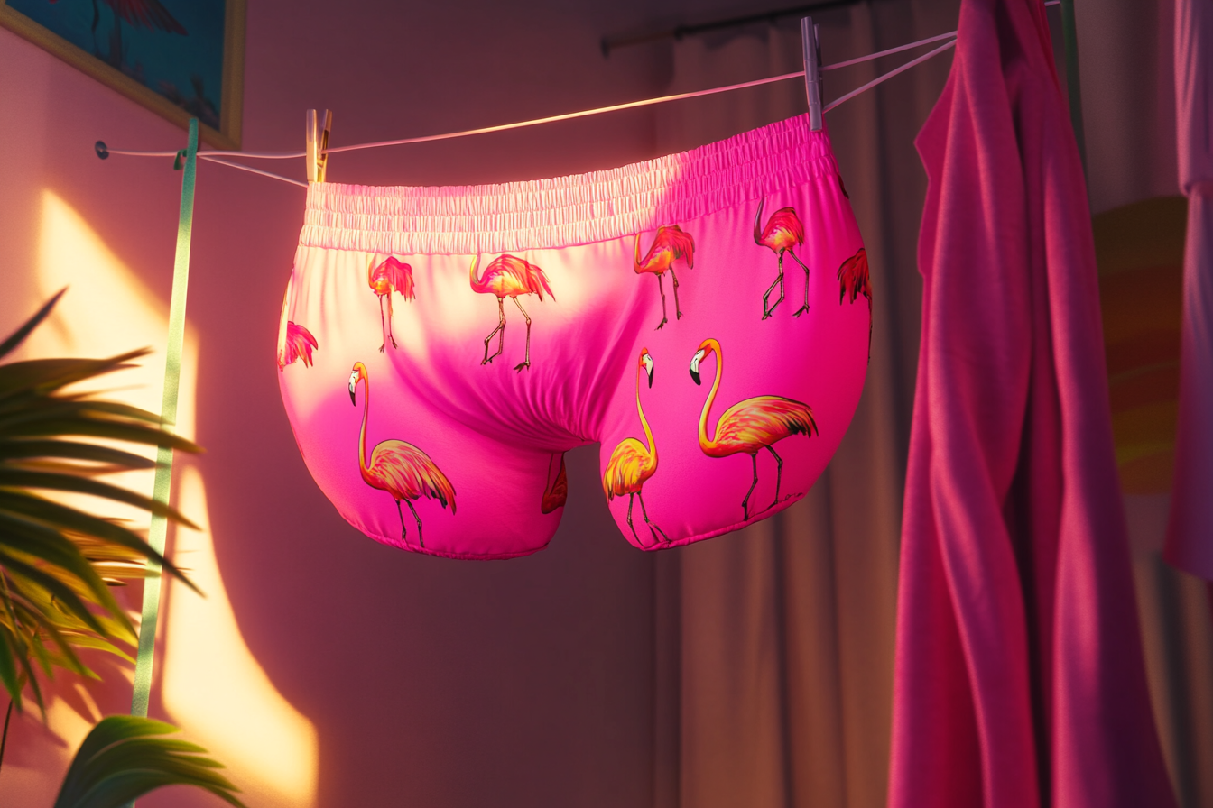 Опънах импровизирано въже и окачих гигантските фламинго гащи точно пред прозореца на хола ѝ.
