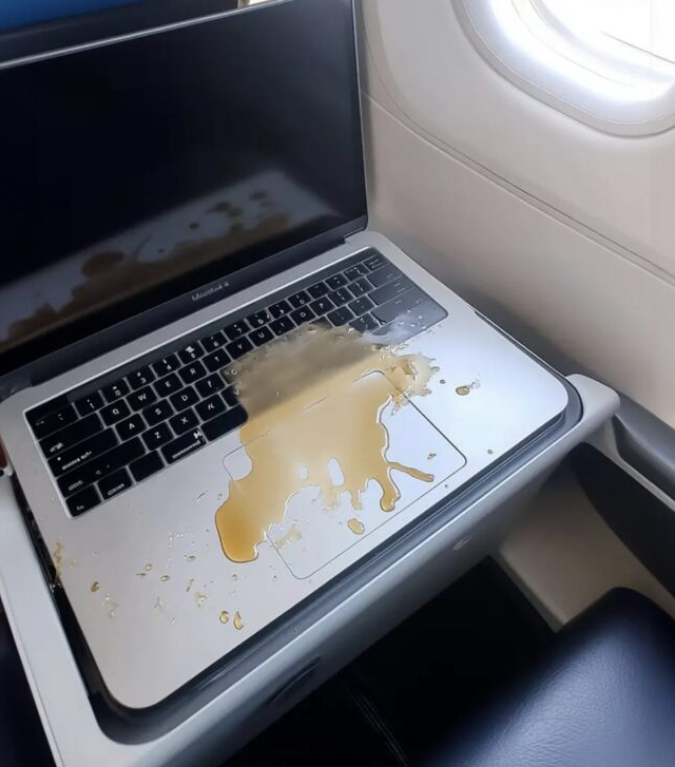 Когато мъж на средна възраст по време на полета разля уиски върху лаптопа ми и с подигравателна усмивка игнорира стреса ми, бях бясна, но замълчах.