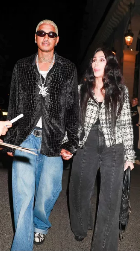 Ако мъжът до Шер изглежда доста уверен, то тя самата или играе ролята на срамежливо момиче, или наистина не е много сигурна, че такава разлика във възрастта е нормална. Най-вероятно това е просто каприз на звездата, която наближава осемдесетгодишния си юбилей.