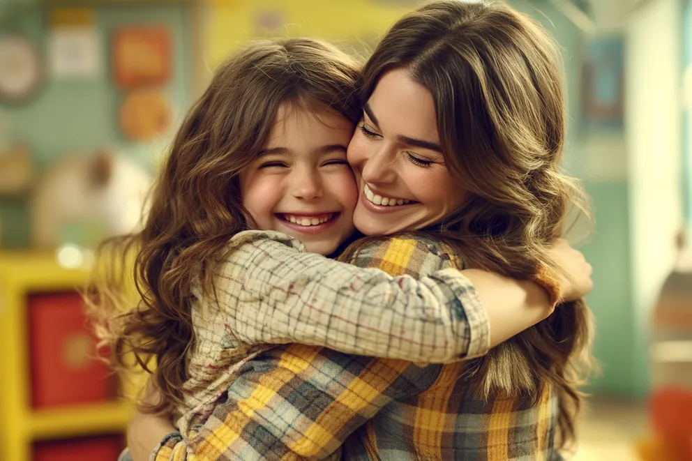 Софи я гледа дълго, преди да се хвърли в прегръдките на Амелия. „Благодаря ти, нова мамо. Много ми харесва.“