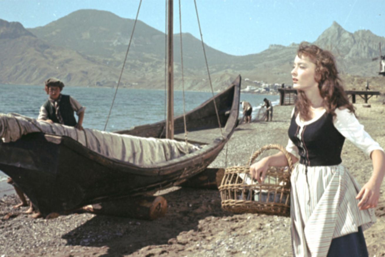 И ето, на хоризонта се появява 16-годишната Настя Вертинская — крехка, с очи, пълни с мечти, сякаш наистина всеки ден чака кораб с алени платна. Режисьорът явно я поглежда и си мисли: „Ето я, моята Ассол! Дори да диша се бои, за да не изплаши вълшебството“.